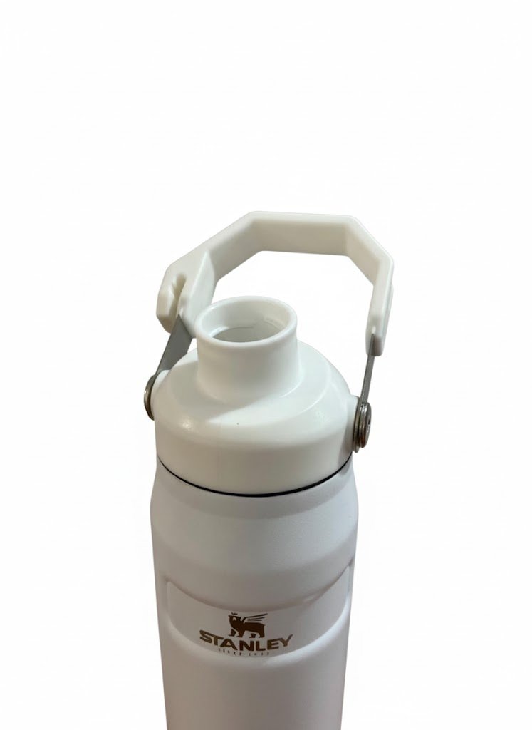Botella térmica blanca Stanley 500 ml con manija resistente, ideal para mantener tus bebidas frías o calientes por horas. Compacta, duradera y perfecta para llevar a todos lados.