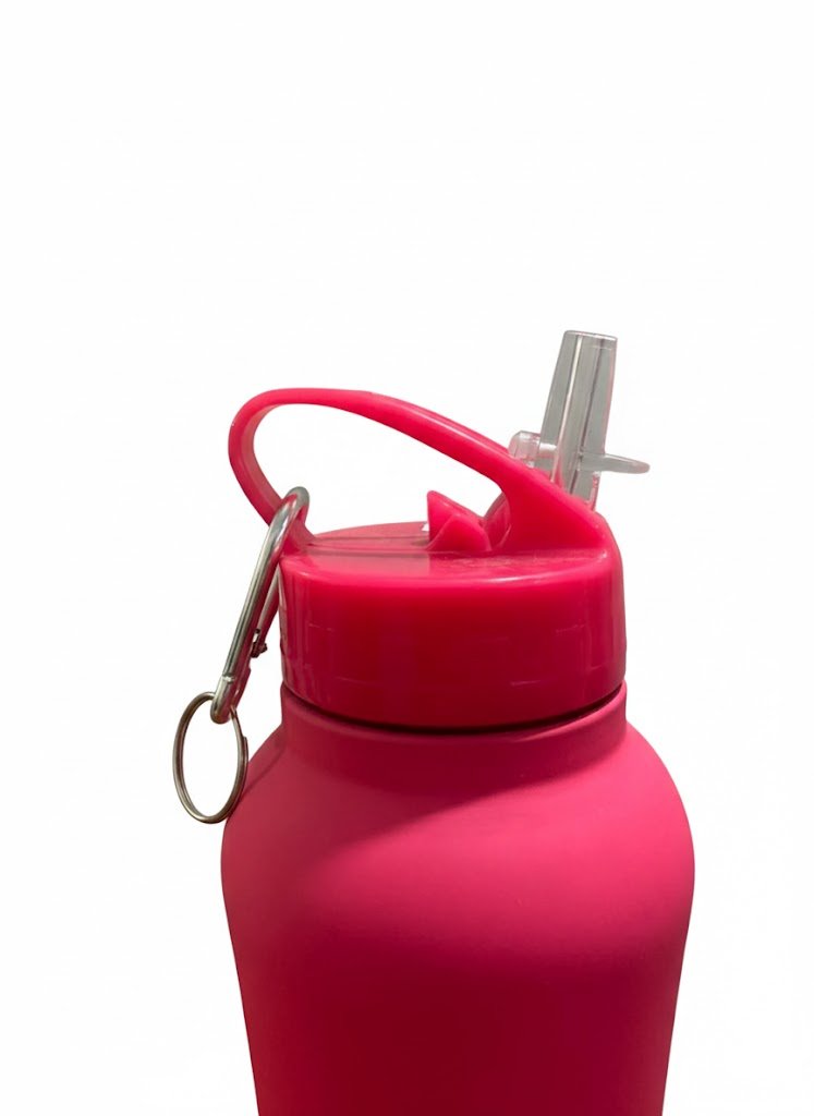 El acabado exterior en rosa flúor aporta alta visibilidad y un estilo moderno, mientras que su estructura robusta está pensada para soportar el uso continuo. Con capacidad de 1 litro, ofrece una excelente autonomía de hidratación sin necesidad de recargas constantes.