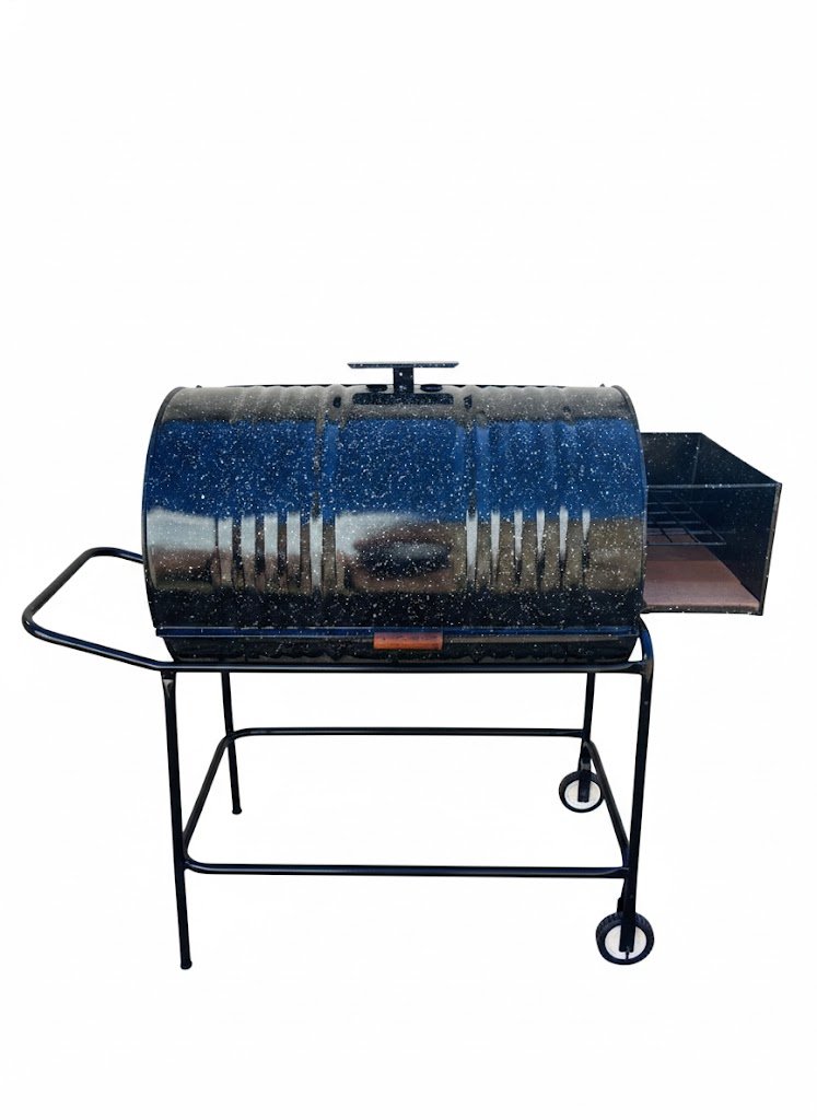 La cámara de cocción tipo barril favorece una óptima circulación del calor, mejorando el rendimiento térmico. Incluye cámara lateral auxiliar, ideal para apoyo, preparación o manejo complementario del calor. La estructura se apoya sobre un chasis robusto, con ruedas integradas que permiten un traslado práctico y seguro.