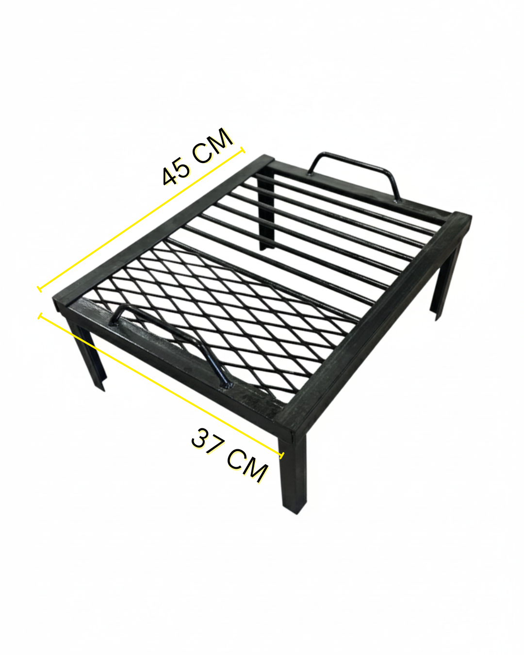 Parrilla metálica de alta resistencia, diseñada para ofrecer durabilidad, estabilidad y excelente rendimiento al momento de asar. Fabricada en acero robusto, cuenta con una estructura firme y rejillas reforzadas que permiten una distribución uniforme del calor para una cocción óptima de carnes, verduras y otros alimentos.