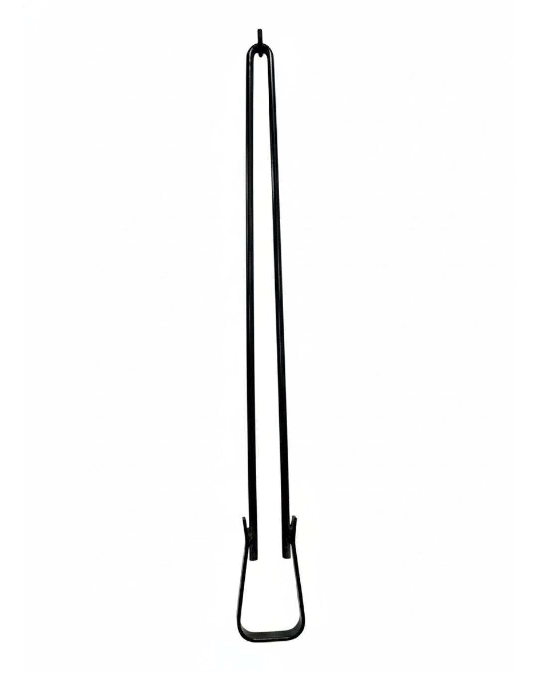 Fabricada en acero reforzado con terminación negra, ofrece una excelente resistencia al calor y al uso continuo. Su formato largo mantiene las manos alejadas de las brasas, brindando mayor seguridad al asador en cada movimiento.