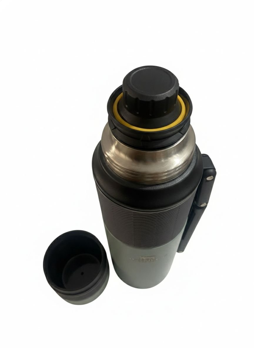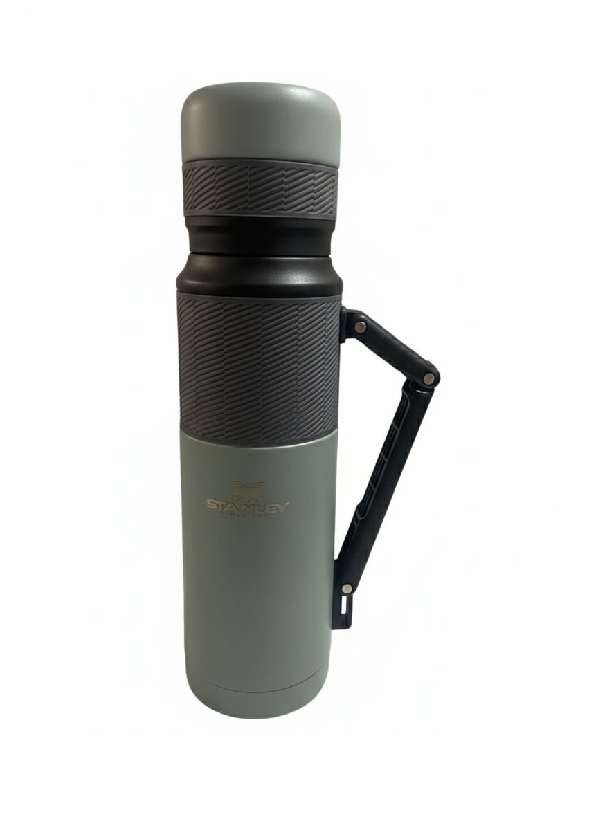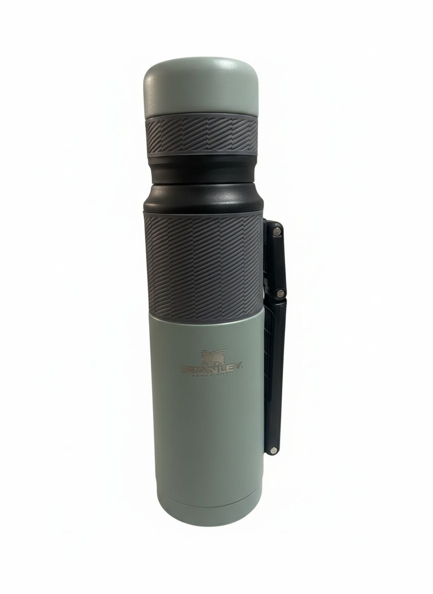 Este termo Stanley de acero inoxidable en un distintivo tono verde agua combina la legendaria robustez de la marca con un diseño ergonómico de vanguardia. Diseñado para los usuarios más exigentes, este modelo destaca por sus detalles en gris con textura antideslizante (grip), que facilitan el agarre incluso en condiciones de humedad o frío.